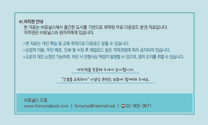 “간호를 교육하다” 이널싱 콘텐츠 보호에 함께해 주세요.